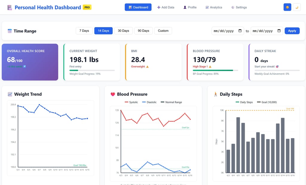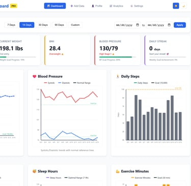 Tired of health apps that steal your data, charge monthly fees, and leave you wondering what your numbers actually mean? Health Dashboard Pro is the game-changing solution that gives you complete control over your health data while providing professional-grade analytics that rival expensive medical software.
